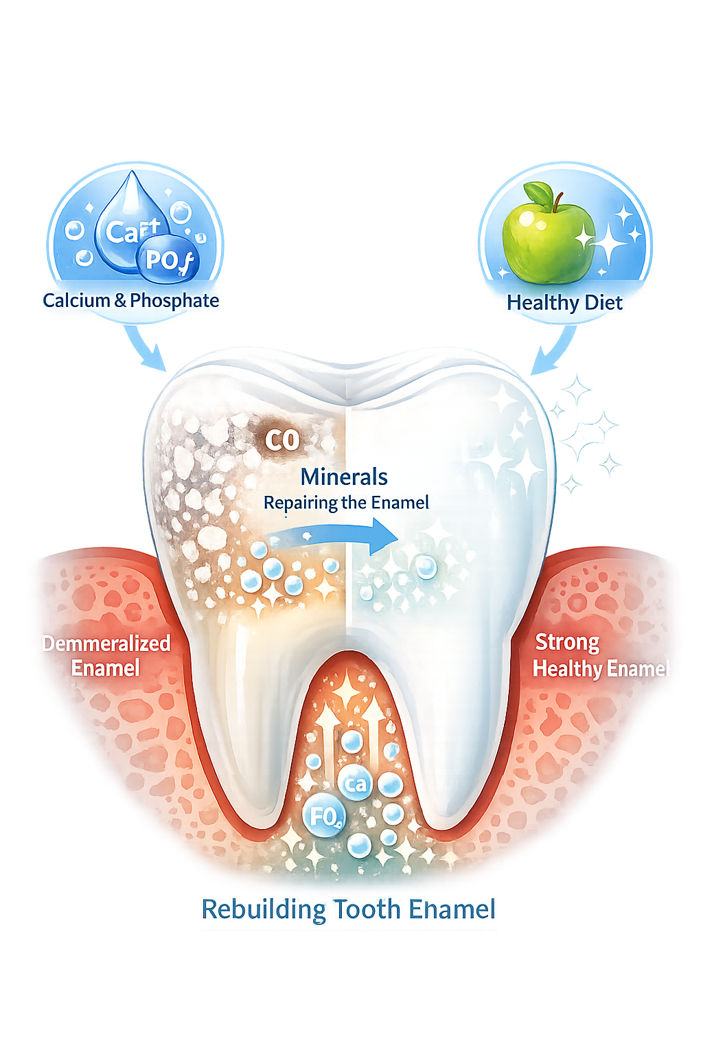 深く削るほど神経(歯髄)に近づき、痛み・抜髄・感染リスクが高まる。 - 歯の自己修復(再石灰化)を活かせるため